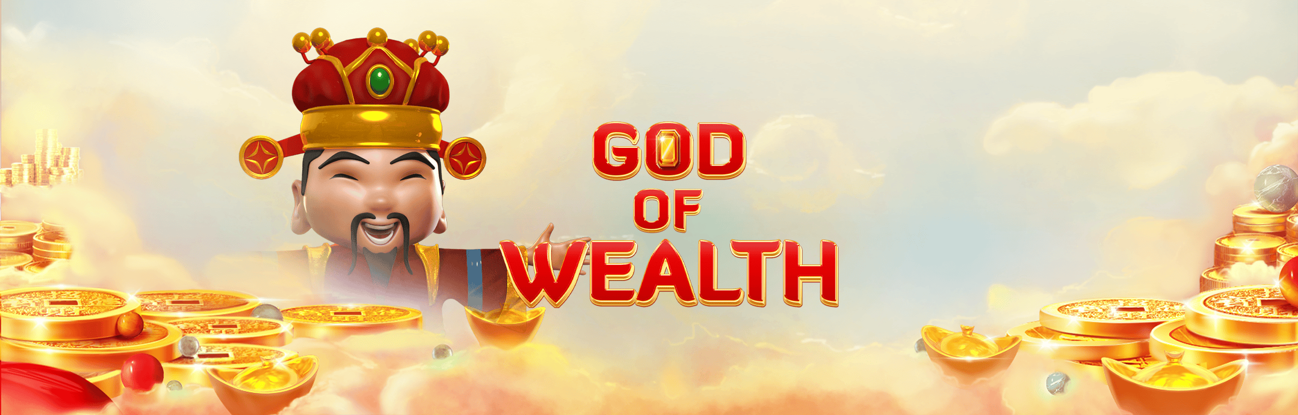 The God of Wealth tosses his gold into the air, and as it falls, it transforms random tiles into golden Wilds!